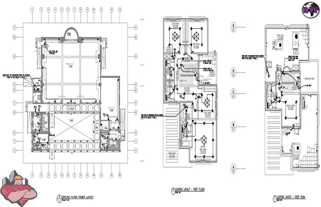 مخططات كهربائية لفندق اوتوكاد Dwg خربشات مهندس